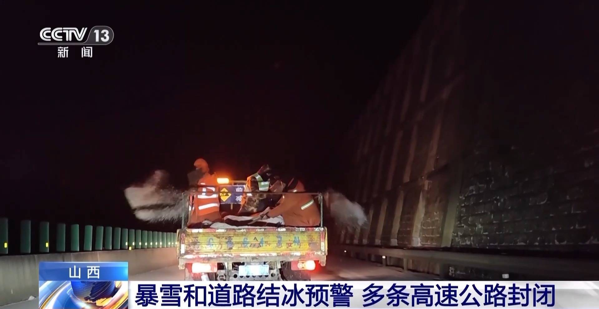 在天黎高速、二广高速、呼北高速、京昆高速等高速部分路段,路面出现积雪结冰。